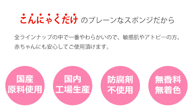 スポンジの製造工場は群馬ではなくお隣の長野県にあります。群馬県産のこんにゃくを使い、長野県の八ヶ岳の源泉のきれいな水を使い製造しております。品質のいいスポンジ作りには冷たくきれいな水が欠かせないので、工場部門だけを移転しました。